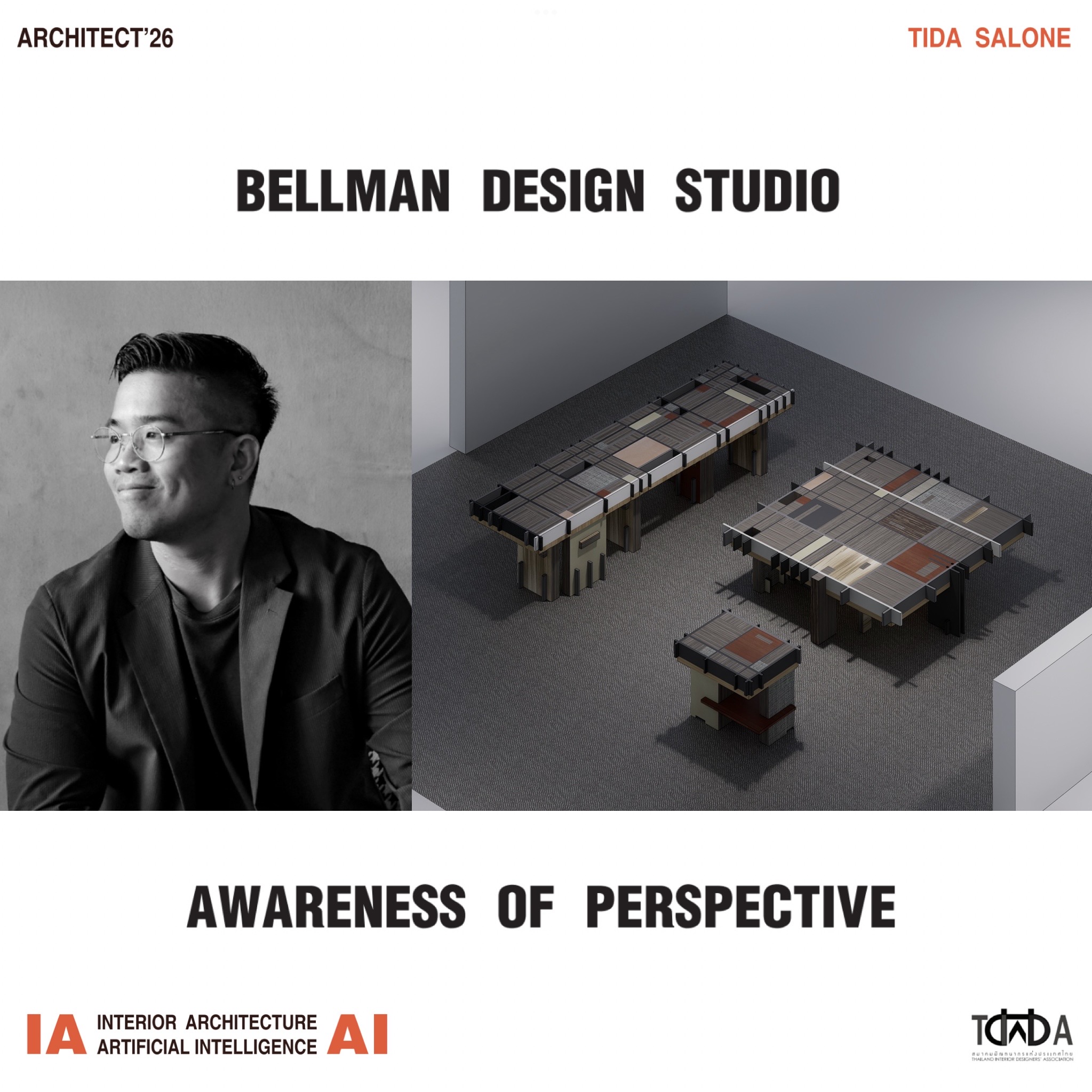 In 2026, the Thailand Interior Designers’ Association (TIDA) presents a booth design concept that builds upon the main theme of ASA Expo: “Sati – Panya – Prompt”